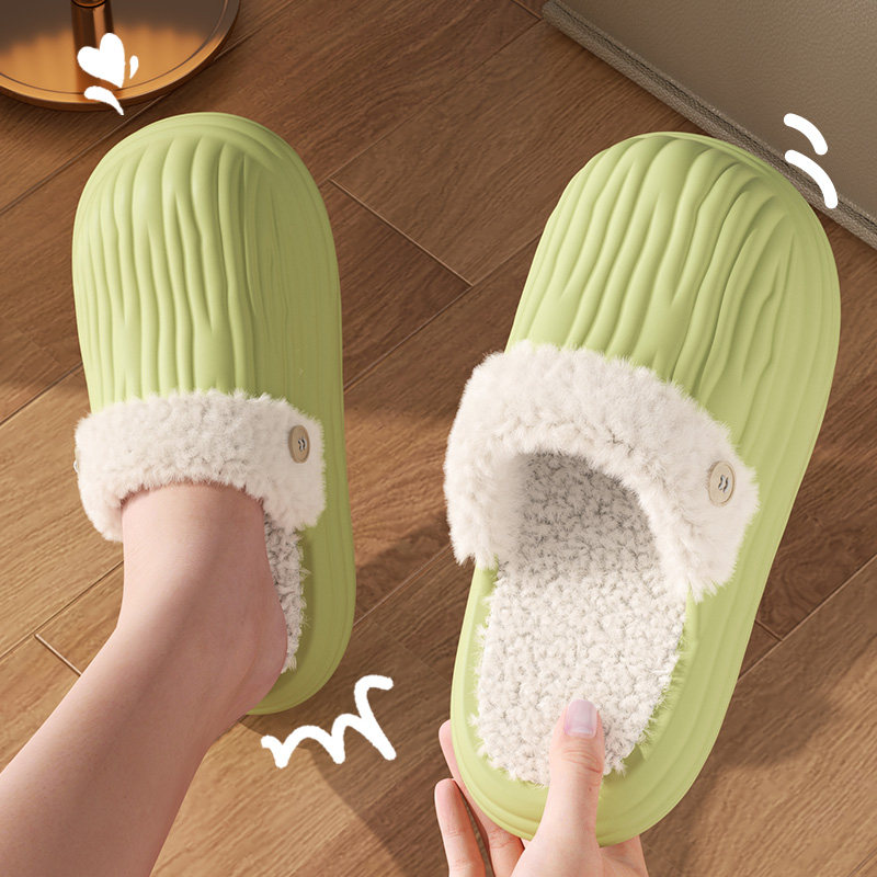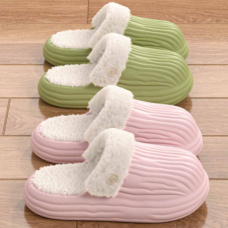 红豆踩屎感棉拖鞋女士秋冬季室内家居2025新款毛绒保暖情侣棉拖男
