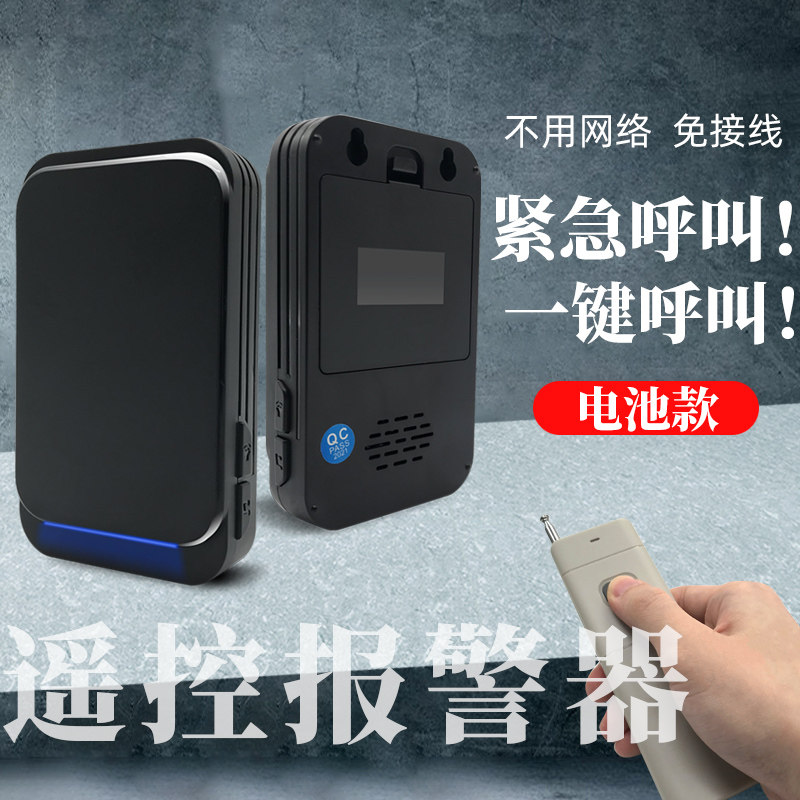 无线遥控报警器音乐响铃一键紧急值岗巡逻学校培训远程呼叫机教室棋牌室KTV闪灯通知提醒电池款 免插电