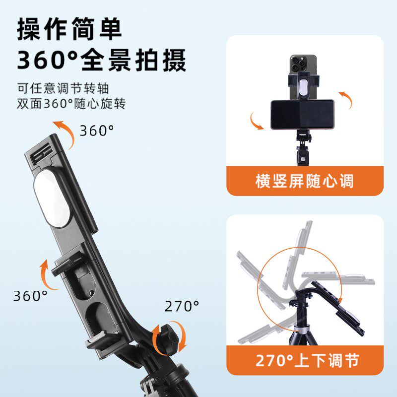 叠品A21P2025新款金属多功能补光自拍杆三脚架遥控拍照神器手机直播支架360°旋转拍照抖音蓝牙便携式防抖