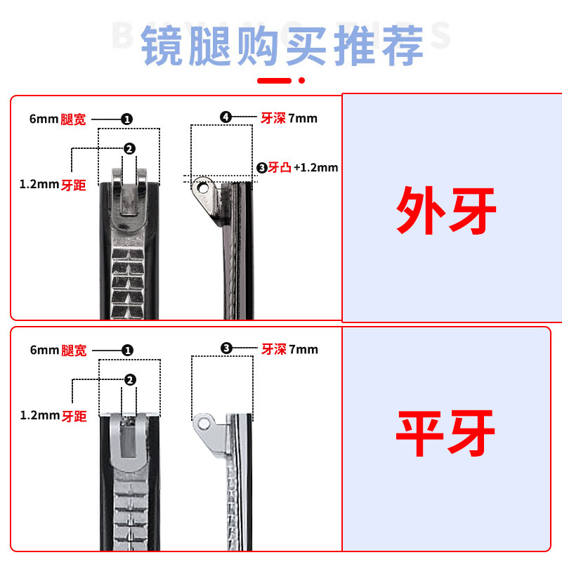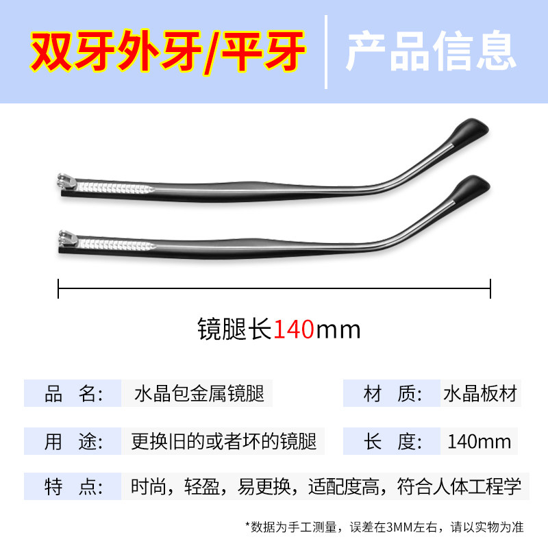 眼镜腿双牙平牙水晶腿外牙镜腿断了断裂损坏修复眼镜配件送螺丝等