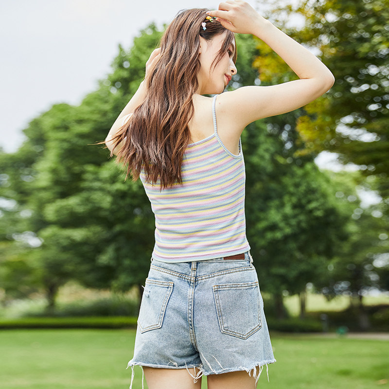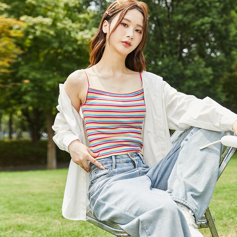 唐狮夏季女背心吊带美背外穿彩色多巴胺针织无袖修身圆领上衣内搭