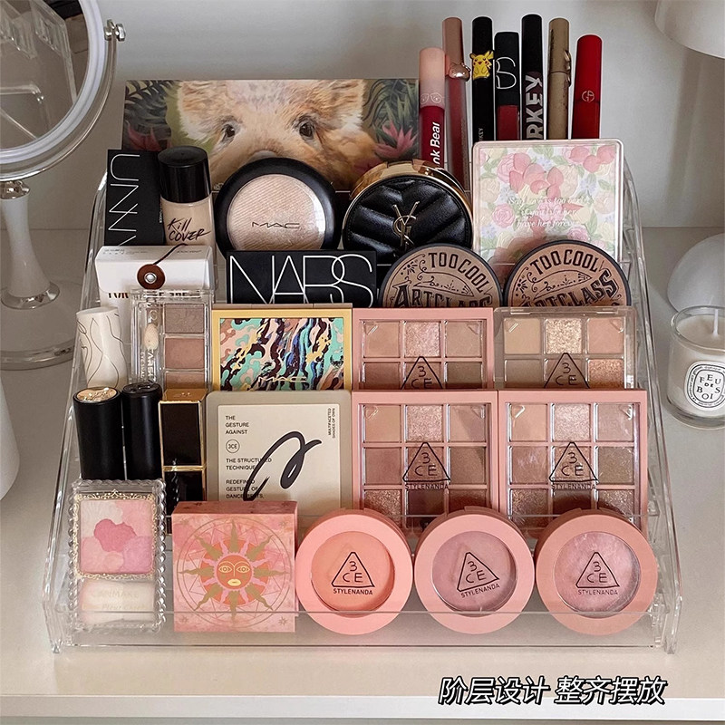 化妆品收纳架透明展示架子多层阶梯式手办公仔置物架桌面整理盒子