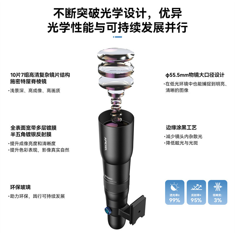 适用APEXEL新款50倍手机外置镜头长焦高清高倍内调焦户外赏月观鸟镜1200mm超远摄定焦望远镜高清便携式含支架
