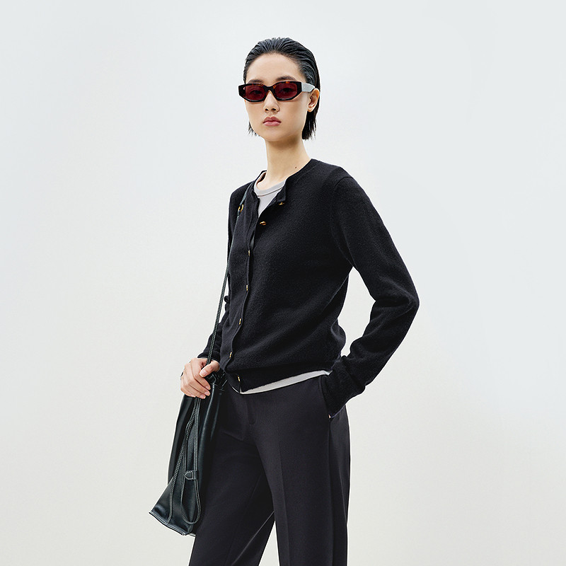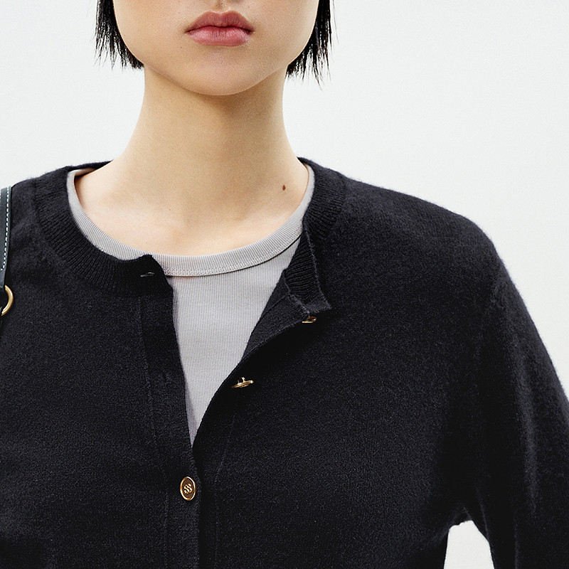 【商场同款/0压系列】LESS2025年春新款短款开襟羊绒衫2P1311150