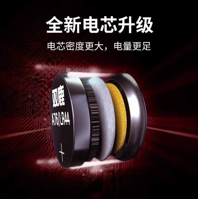双鹿LR44纽扣碱性电池AG13 L1154 A76 357aSR44电子手表1.5V玩具遥控器游标卡尺lr1130通用lr41圆形1892