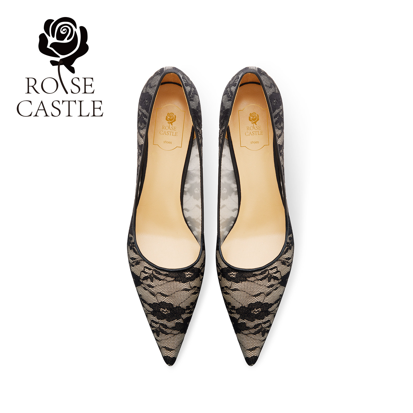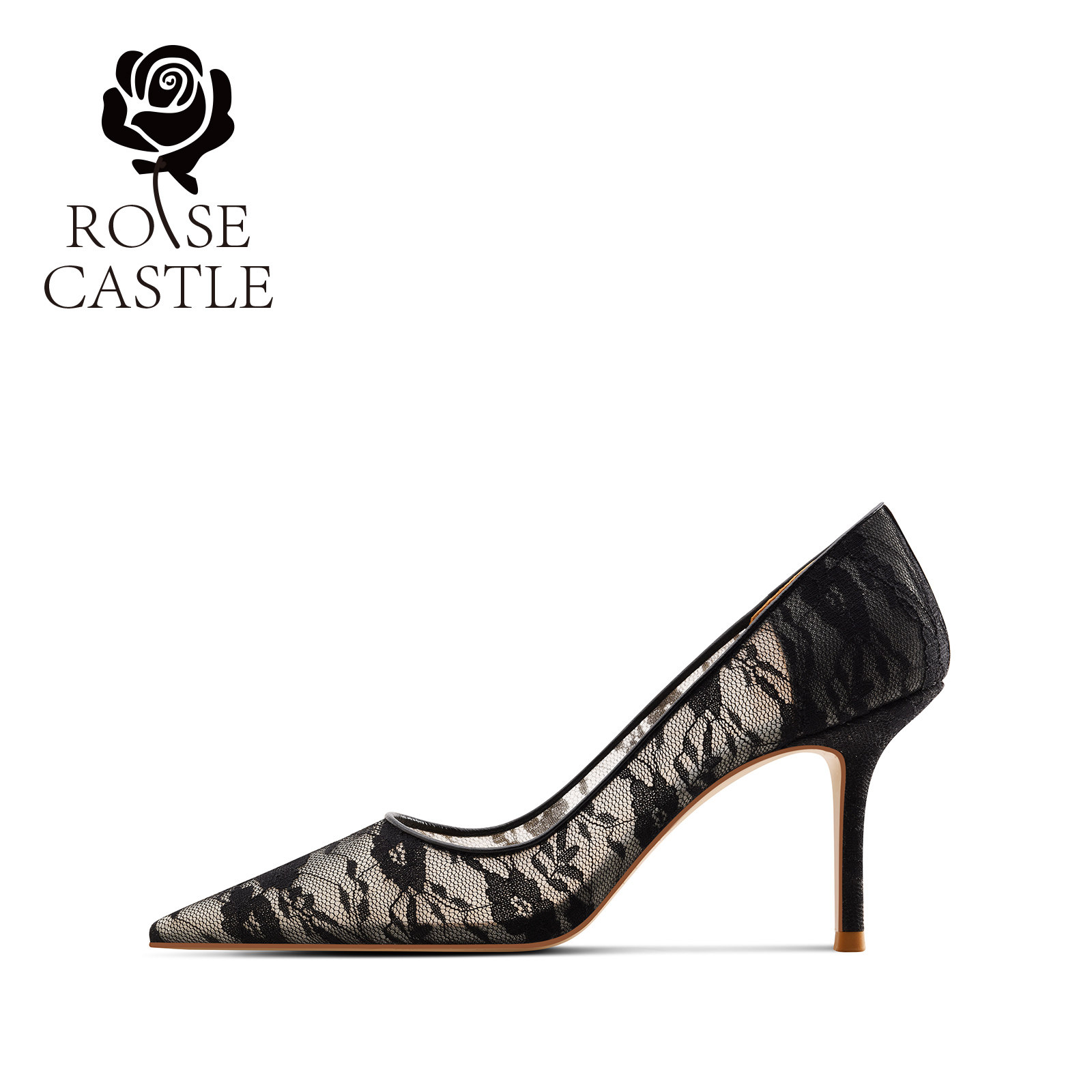 绮丽花舞rosecastle宴会旗袍高跟单鞋黑色蕾丝礼服鞋网纱刺绣女鞋