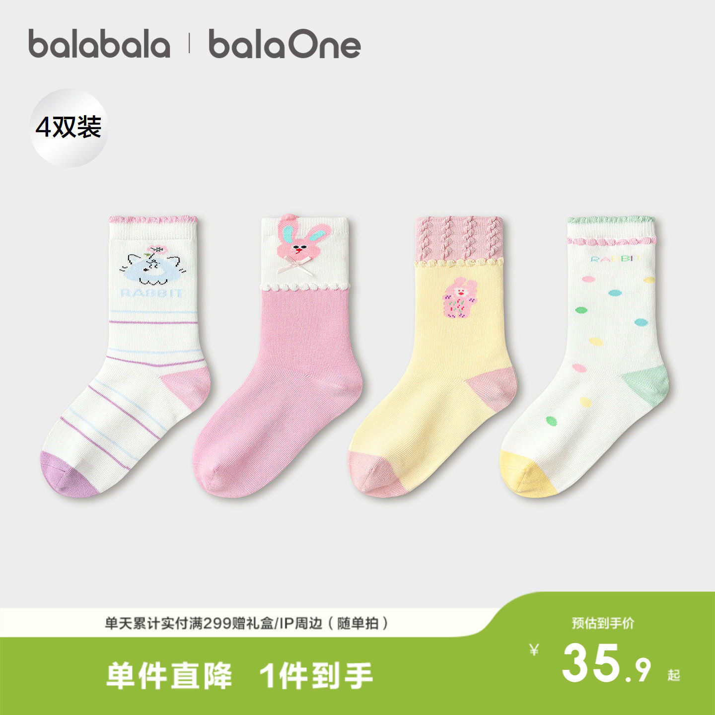 【balaOne】巴拉巴拉儿童袜子春秋季女童提花甜美短袜柔软四双装