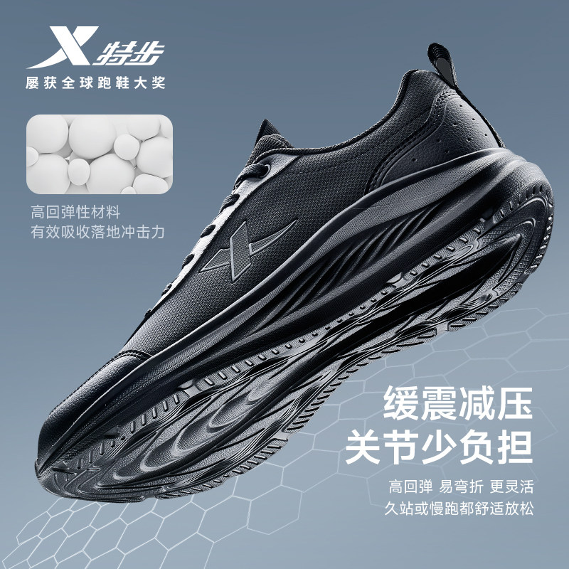 特步跑步鞋男鞋冬季新款黑色运动鞋皮面防泼水爸爸减震网面休闲鞋