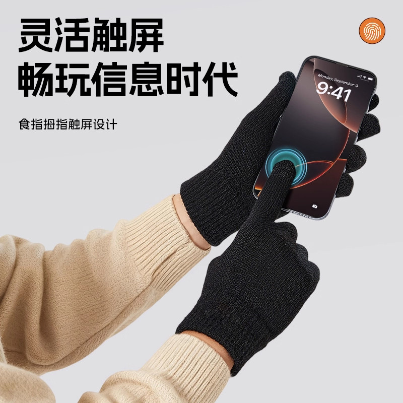 可触屏棉手套男士冬季保暖加绒加厚毛线针织骑行男女同款防寒手套