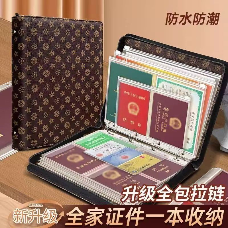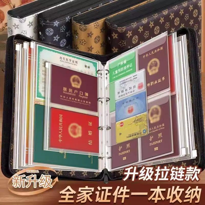 拉链款皮面家庭证件收纳包活页a4收纳册证件票据档案册房本保护套户口本疫苗本宝宝出生证明护照驾驶证活页册