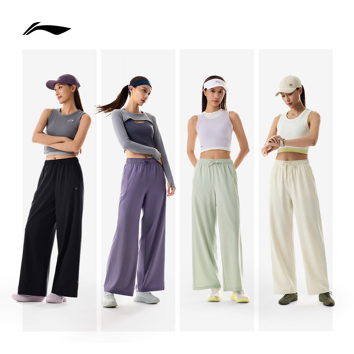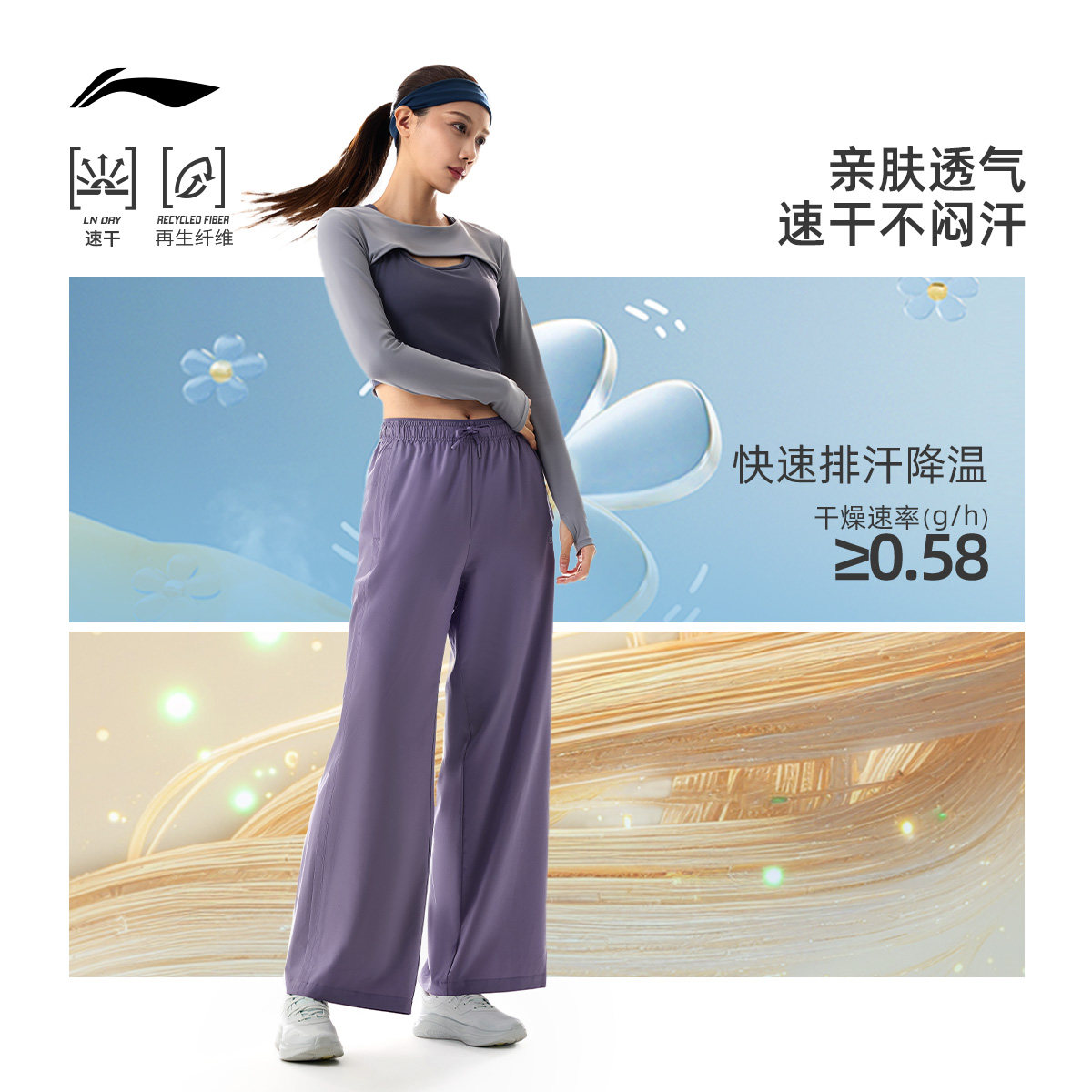 李宁奶芙裤丨阔腿裤直筒裤子女2026新款夏季薄款宽松卫裤运动长裤