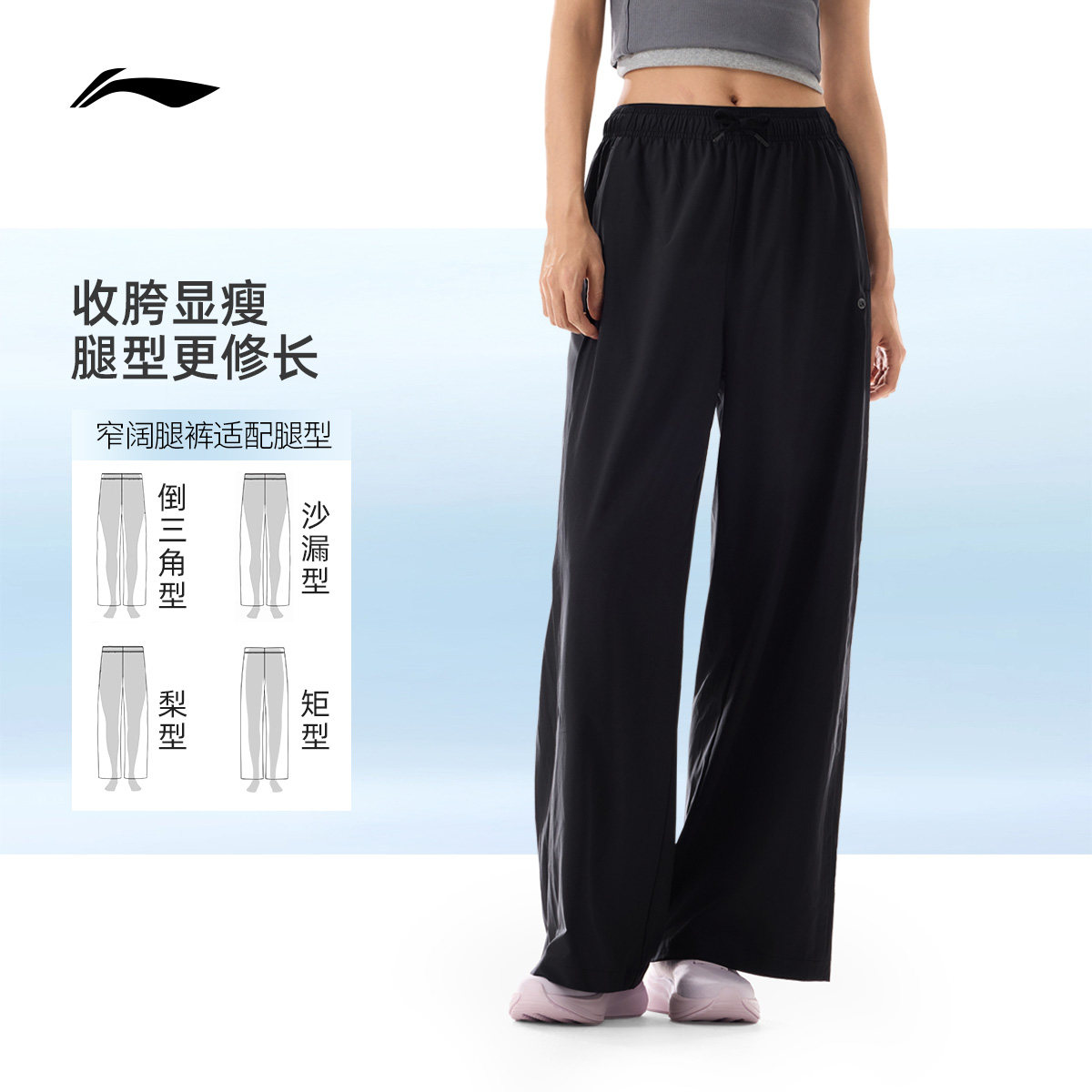 李宁C位裤丨窄阔腿裤运动长裤女宽松裤子夏季直筒速干梭织运动裤