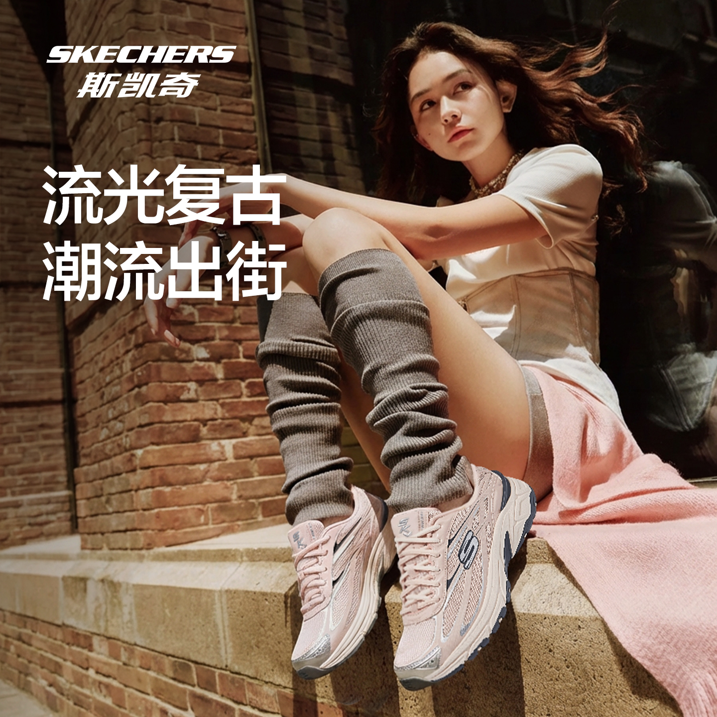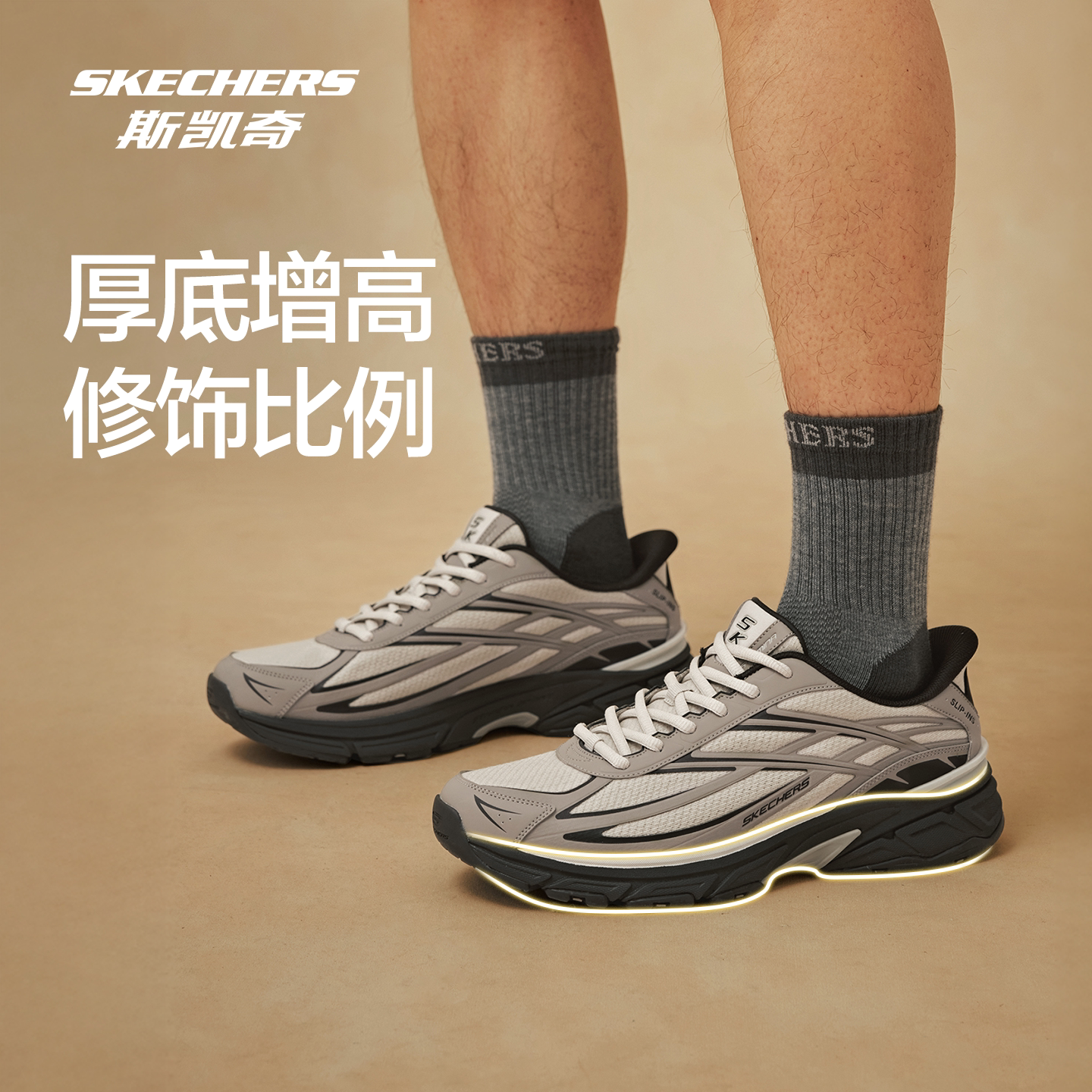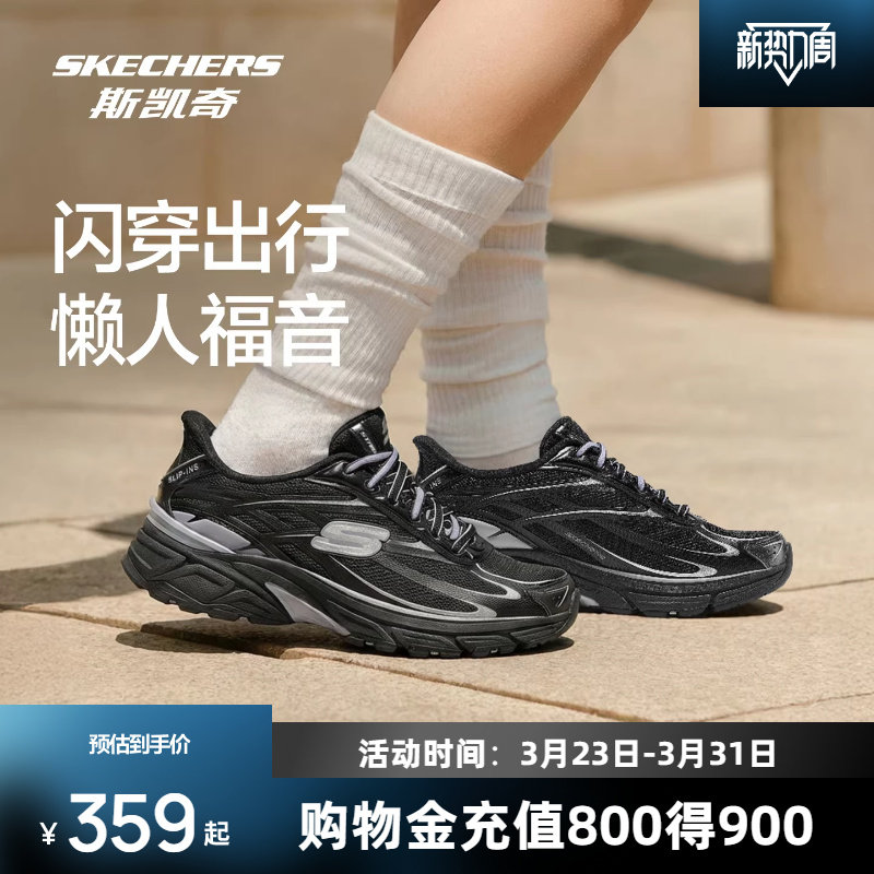 斯凯奇银翼鞋男女闪穿老爹鞋复古跑鞋官方潮流运动鞋一脚蹬休闲鞋