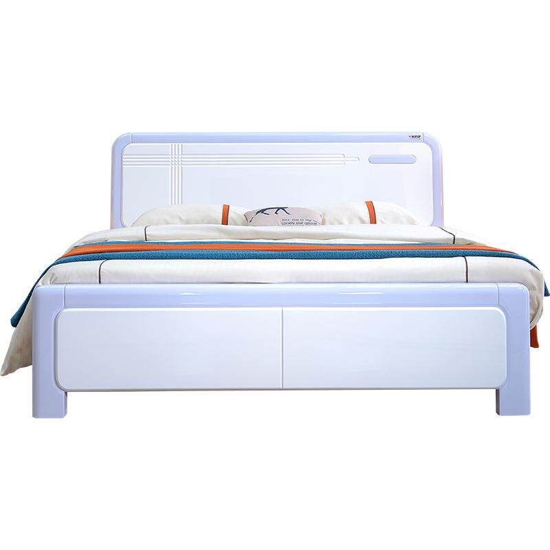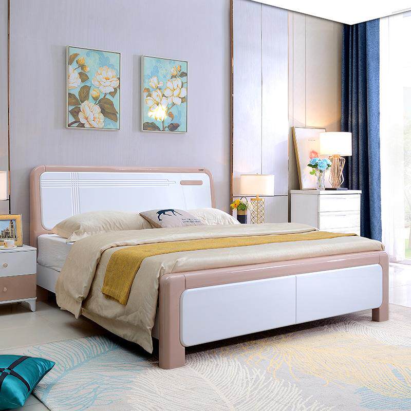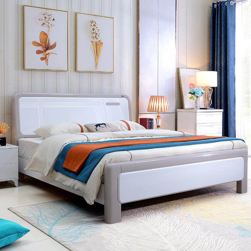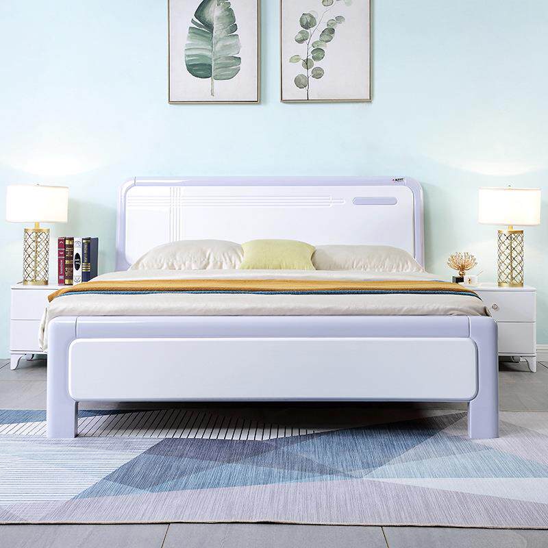 现代简约白色烤漆橡木实木双人床主卧高箱床1.5m1.8米婚床2米大床