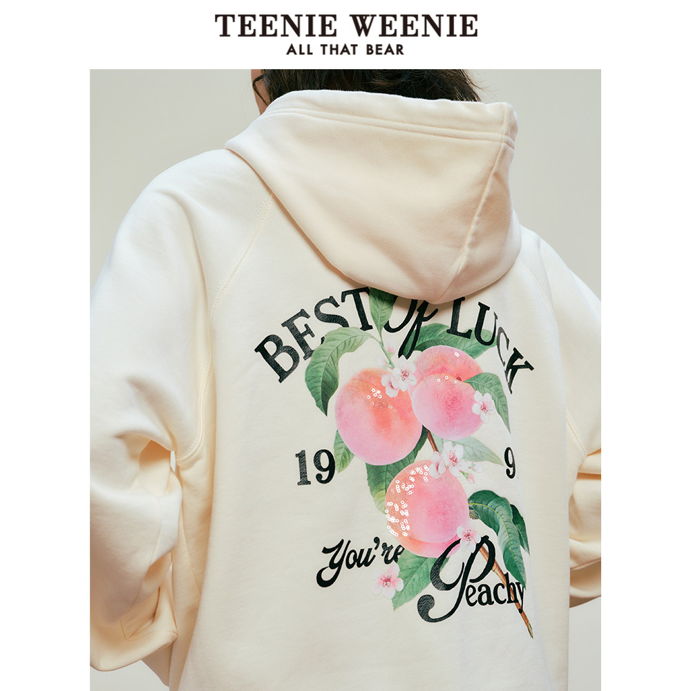 TeenieWeenie小熊奥莱秋季桃运满满粉色连帽卫衣宽松柔软女