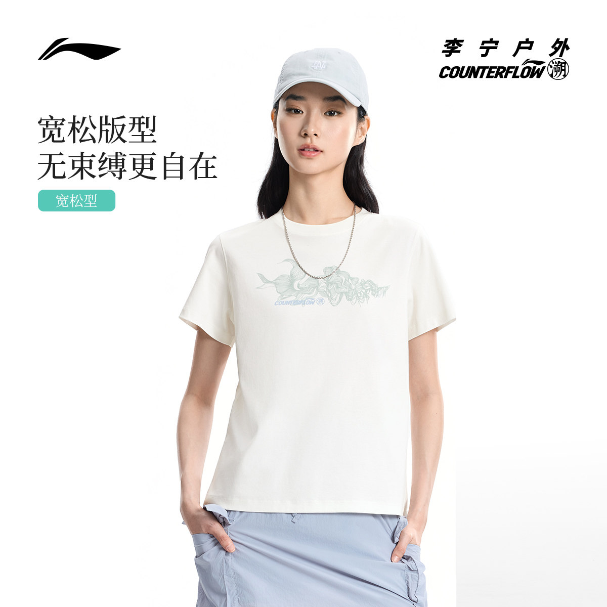 李宁户外CF溯|短袖T恤女新款圆领半袖宽松休闲春夏透气运动服