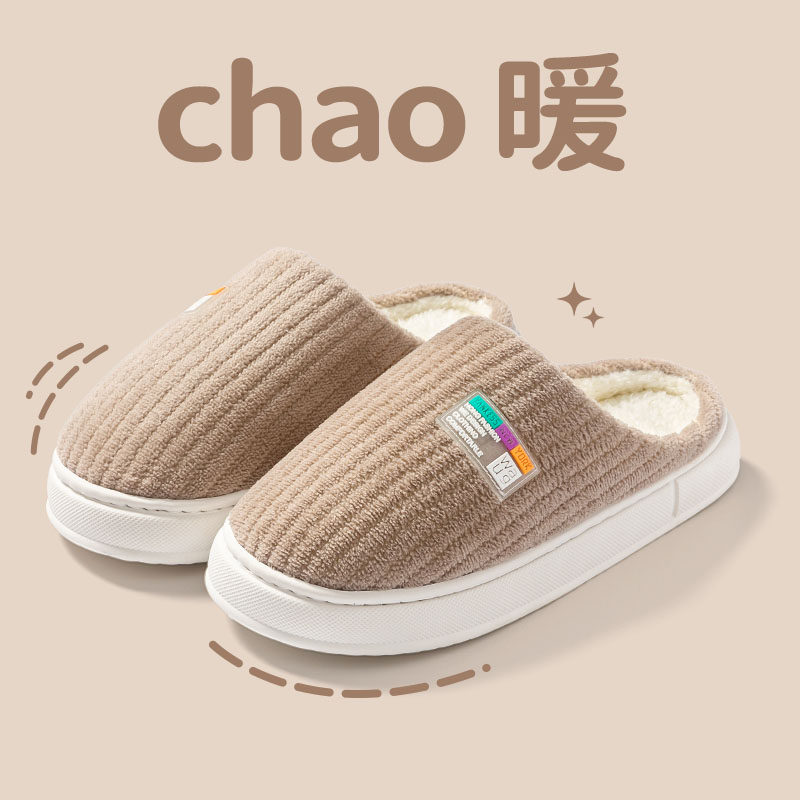 红豆踩屎感棉拖鞋女士秋冬季室内家居2025新款毛绒保暖情侣棉拖男