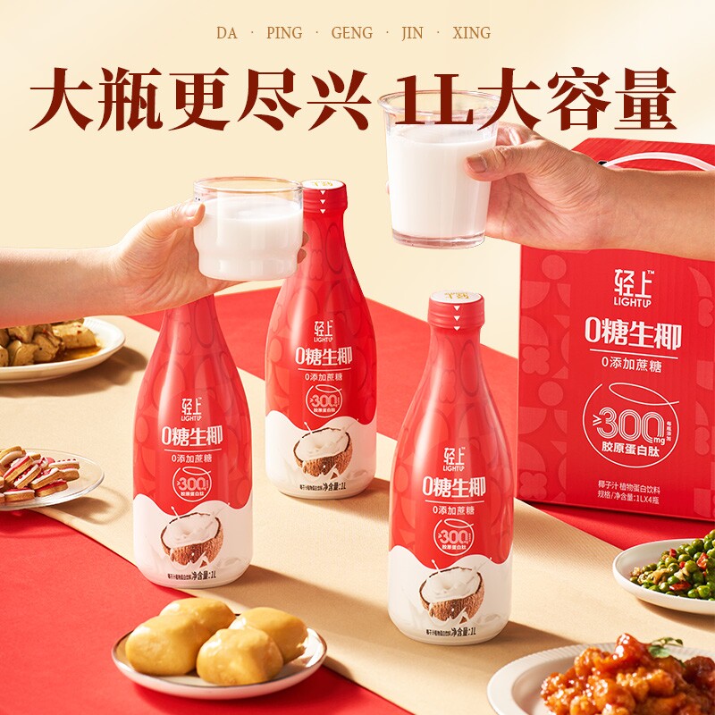 年货礼盒丨轻上0糖生椰椰汁椰子汁饮品1L大瓶装饮料家庭聚餐解渴
