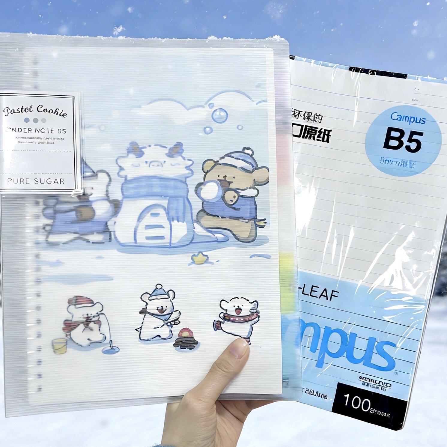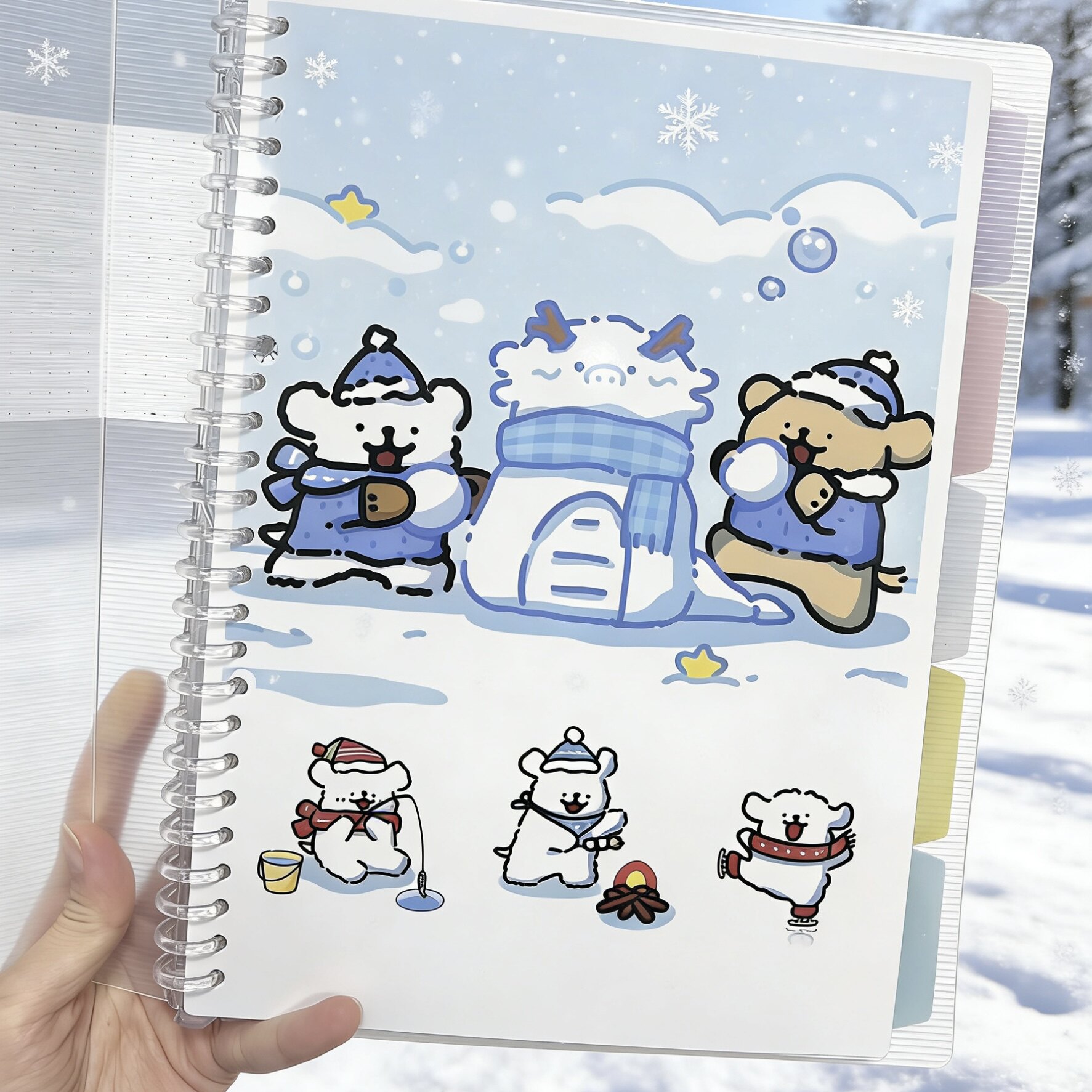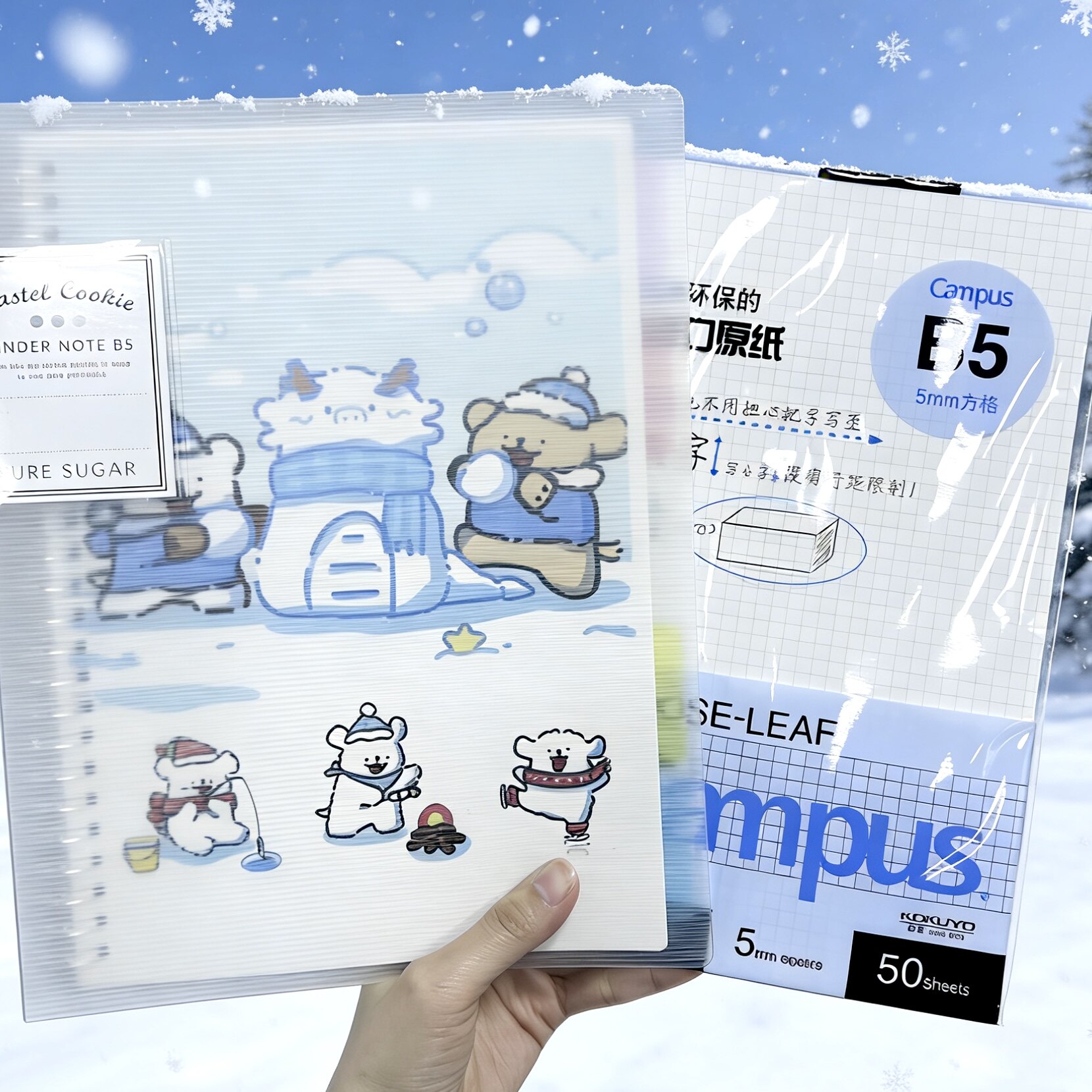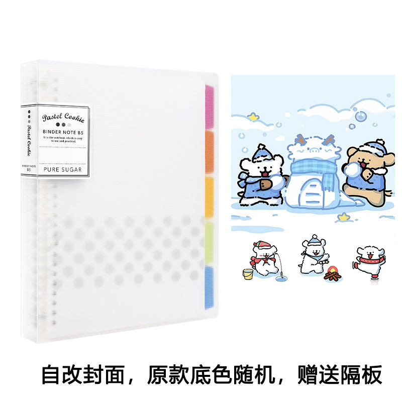 日本国誉活页本淡彩曲奇线条小狗冬雪可爱外壳可拆卸B5文具记事A4本子笔记本学生活页纸kokuyo替芯可换日系