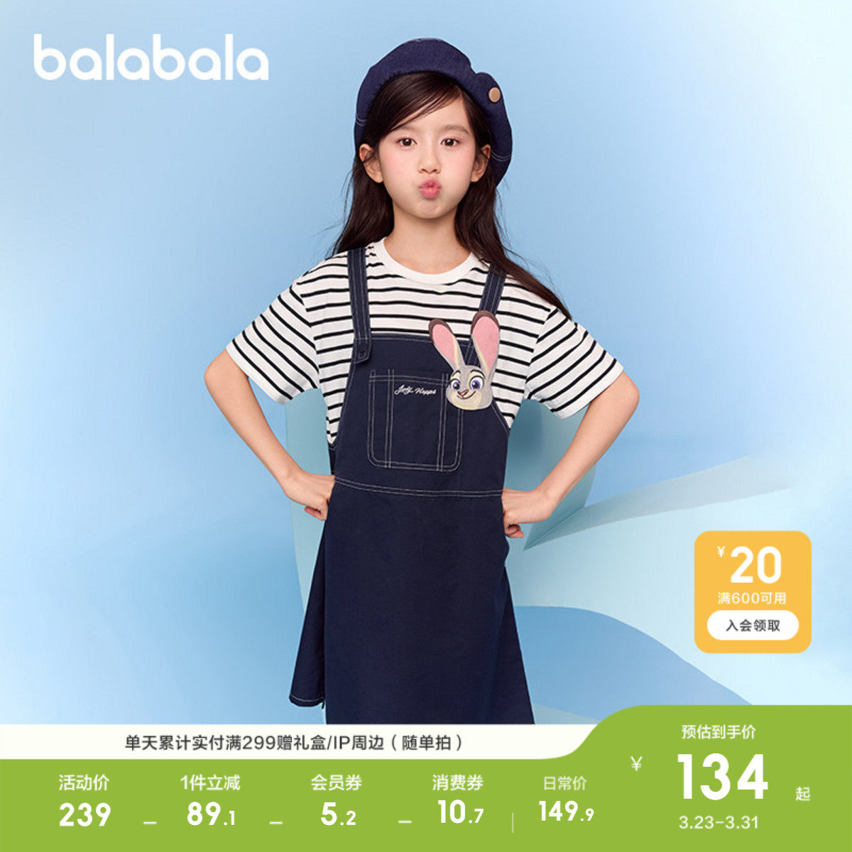 【疯狂动物城】巴拉巴拉童装女童连衣裙新款夏假两件背带裙潮