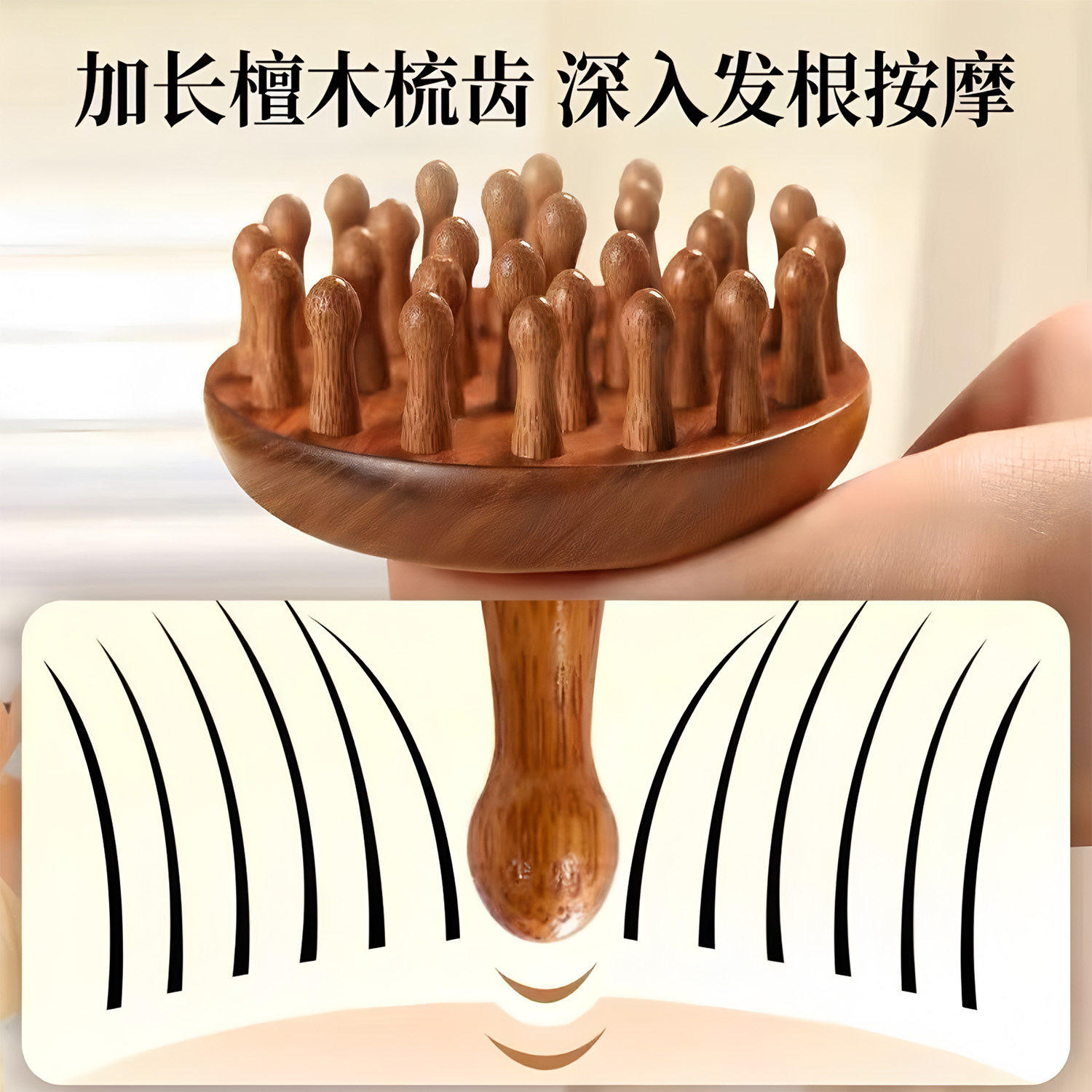 金丝檀木圆盘按摩梳头部头皮经络梳毛囊疏通神器养发保健宽齿梳子