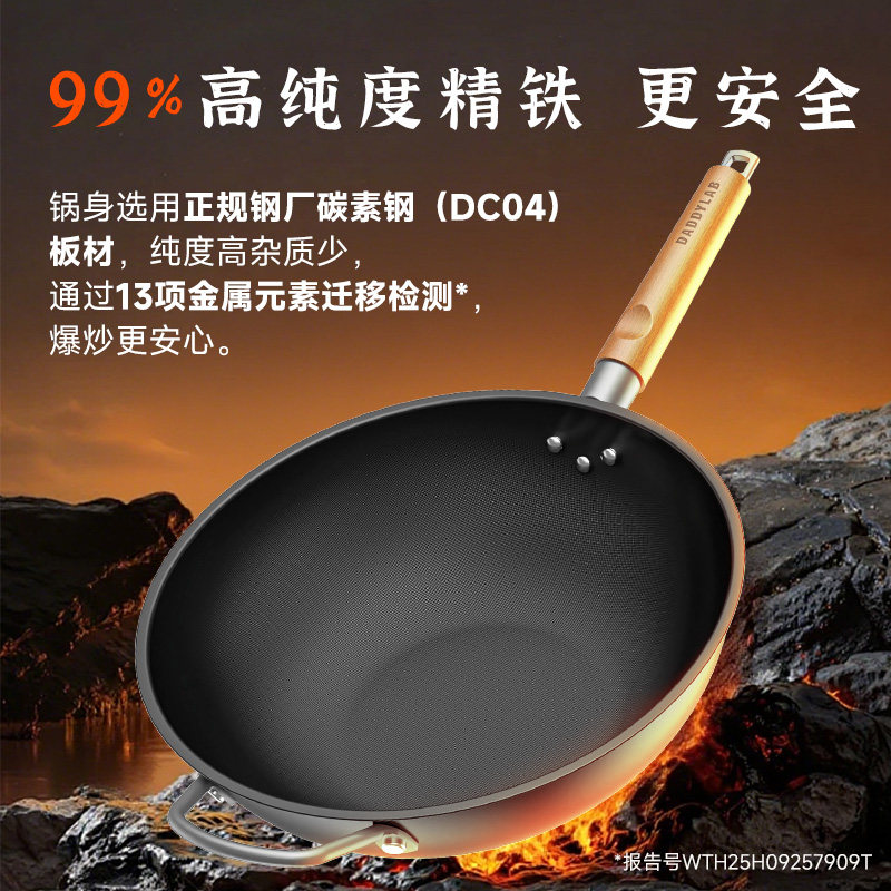 老爸评测定制铁锅老式家用炒菜锅无涂层不易粘燃气精铁炒锅抗腐蚀
