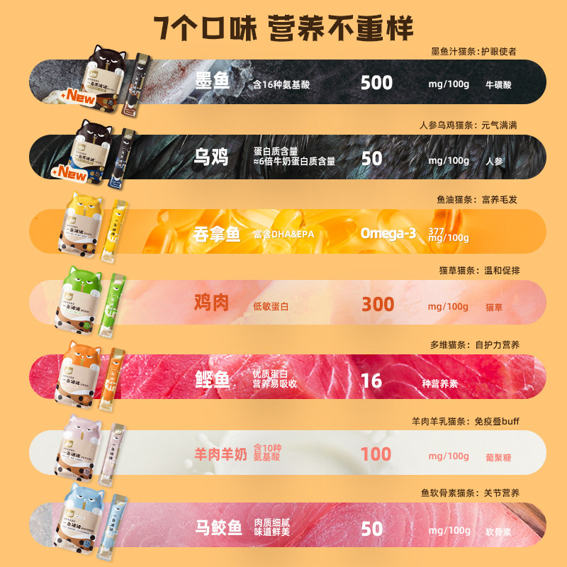 【品牌自营】WoWo喔喔波波鱼油猫咪猫条零食成幼猫羊乳肉酱无添加
