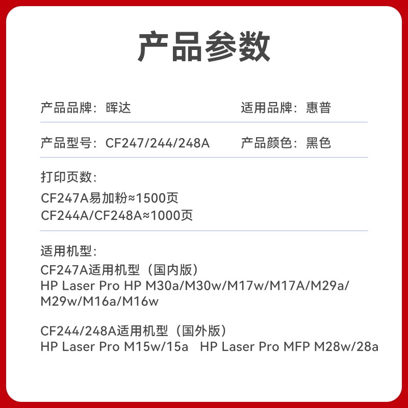 晖达适用惠普M30W硒鼓M28W/A M31W CF247A 244A 248A M15W打印机M17A/W M30A墨盒HP47A 44A 48A粉盒M16W M29W