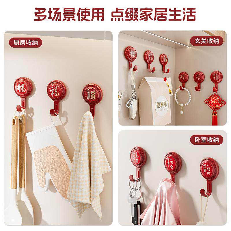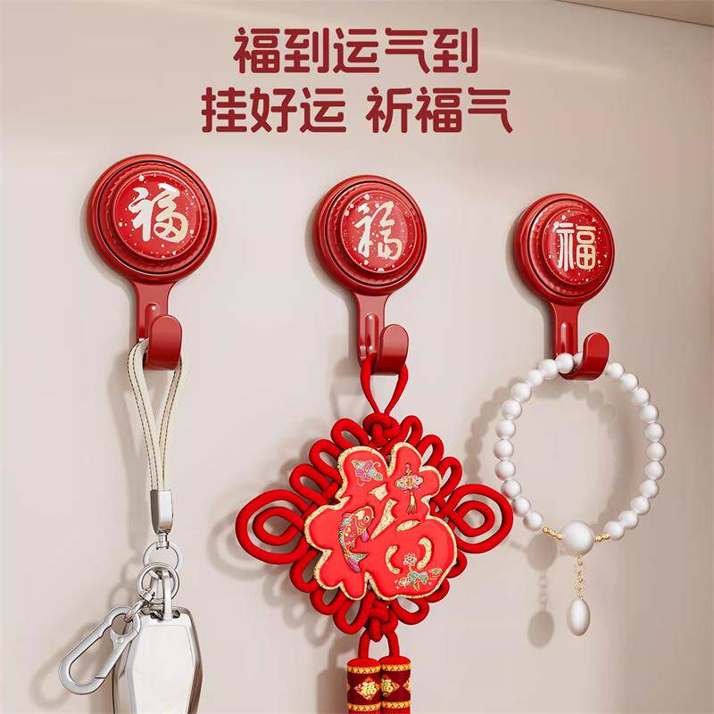 中国红色福字挂钩新年粘钩打孔无痕结婚钩子粘胶喜庆墙上宿舍强力