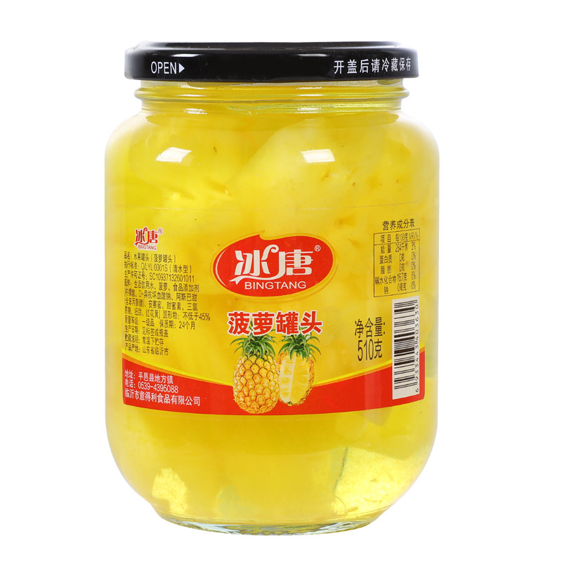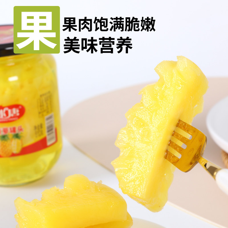 510g玻璃瓶大罐菠萝罐头办公室休闲零食糖水水果罐头即食罐装美味