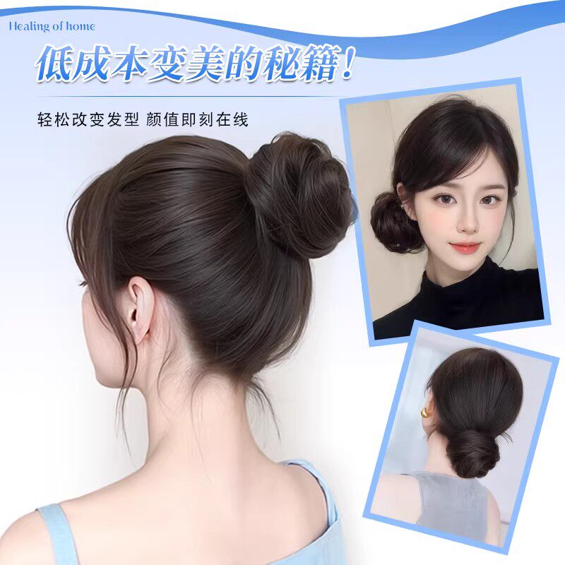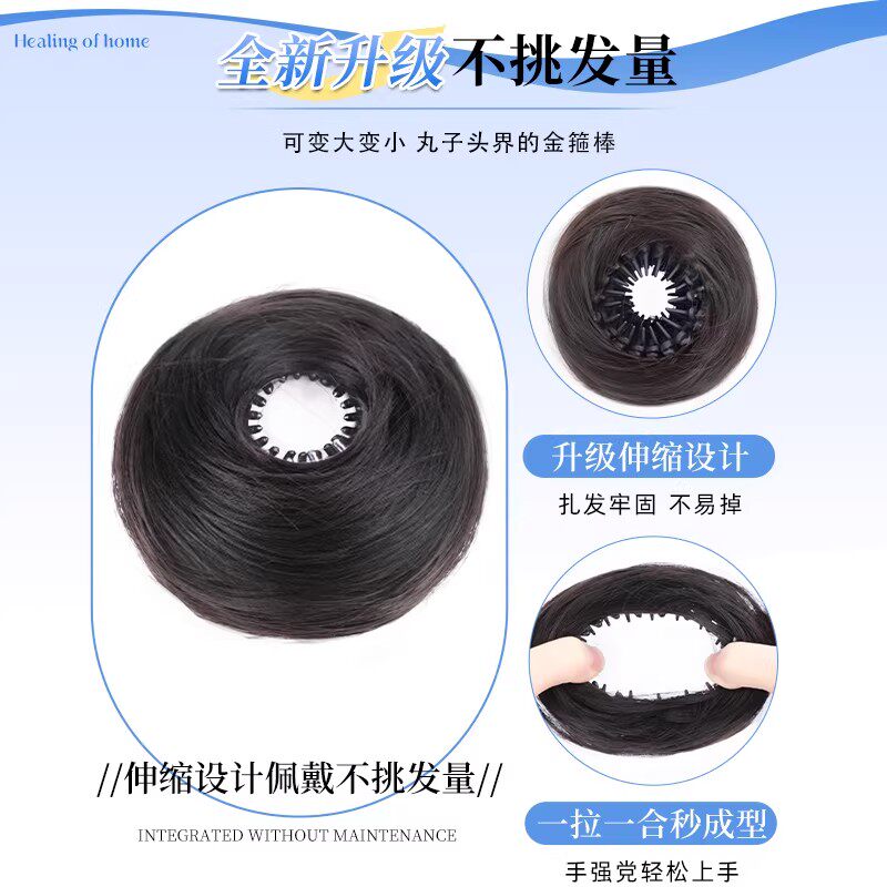 低扎丸子头假发鸡毛头抓夹盘发发包慵懒感造型头饰自然蓬松后脑勺