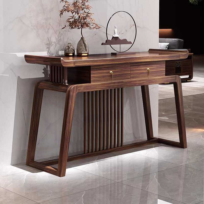 新中式玄关台乌金木禅意入户玄关桌条案台佛台复古客厅实木玄关柜