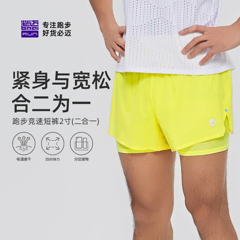 必迈跑步竞速短裤2寸二合一男女马拉松夏季透气速干户外运动裤