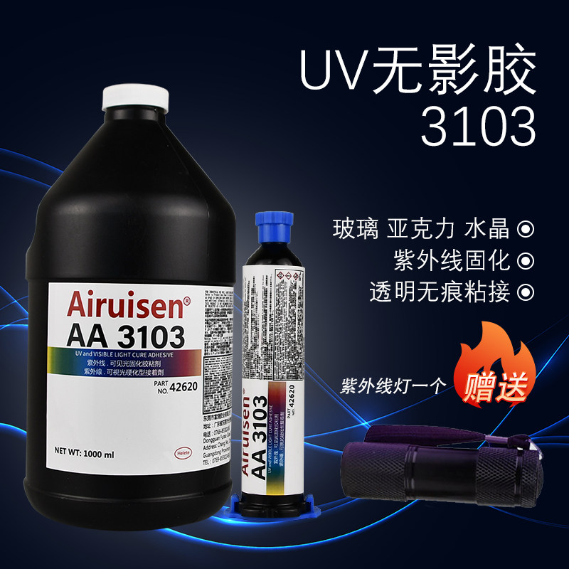 爱瑞森3103胶水UV无影胶紫外线固化快干透明水晶滴胶diy手工饰品无气泡膏体柔韧性电子元器件边缘固定密封