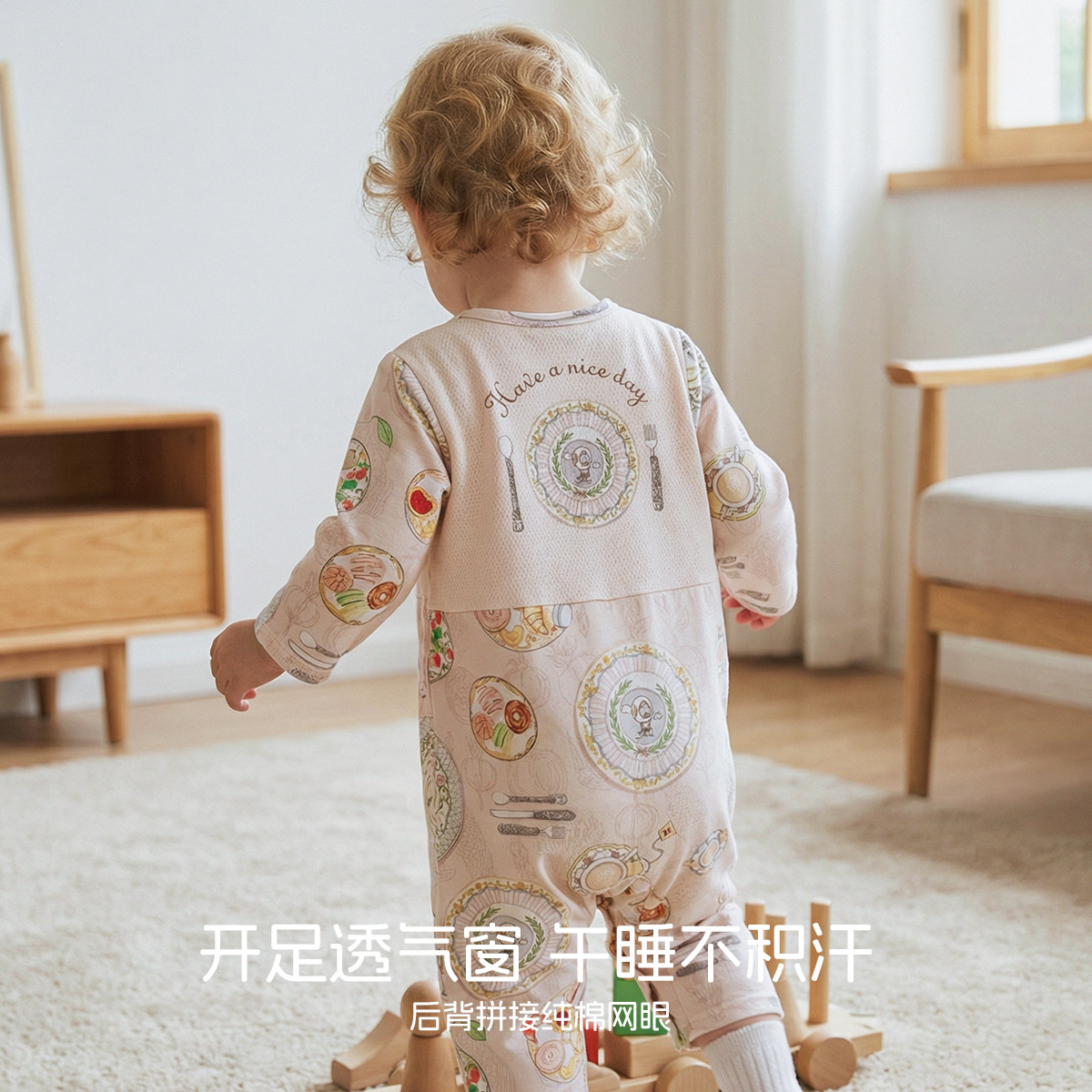 aqpa爱帕婴儿连体衣哈衣纯棉夏季网眼透气长袖空调服宝宝衣服可爱