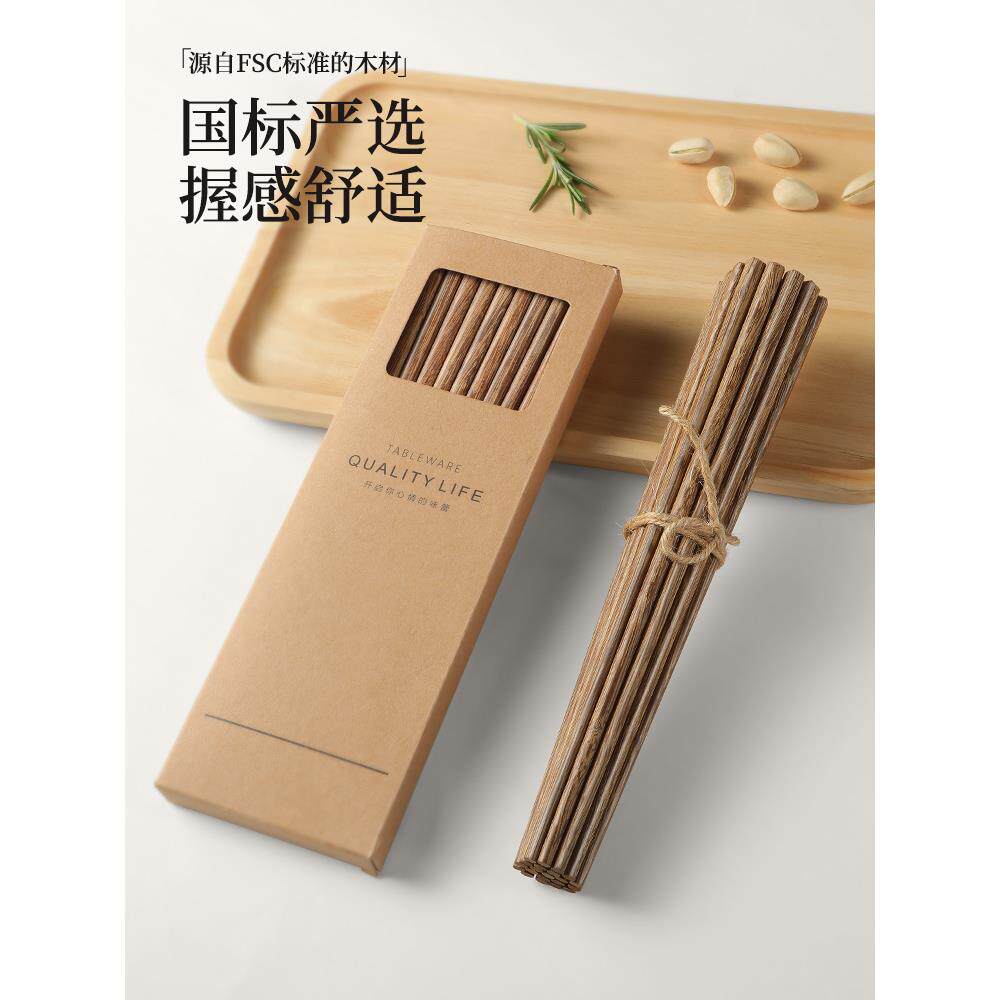 利瓷鸡翅木筷子家用防滑防霉木质快子10双20双家庭套装木箸