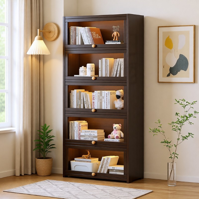 实木书架落地胡桃木色自由组合客厅柜子储物柜家用格子书柜置物柜