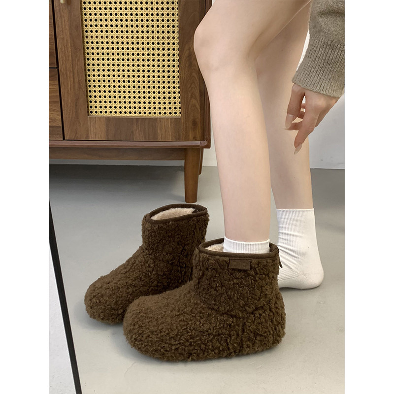 低帮厚底雪地靴女2025新款冬季懒人一脚蹬毛毛棉鞋加绒加厚女鞋子