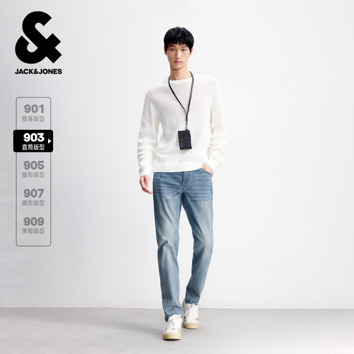 [强弹]901修身杰克琼斯休闲复古中蓝水洗牛仔裤长裤子男秋冬男装