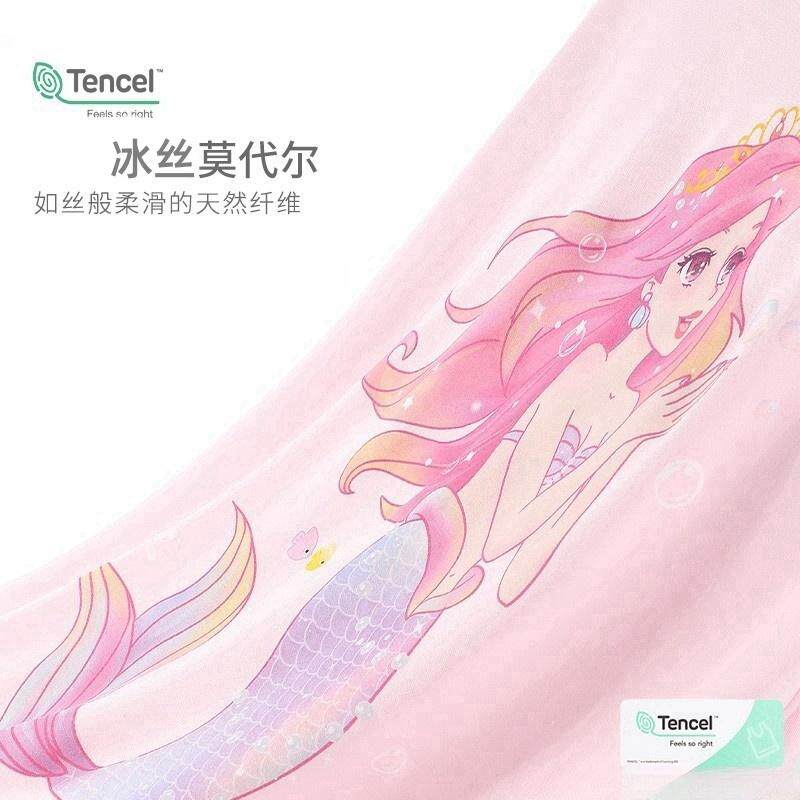 莫代尔夏薄款女童短袖睡裙儿童冰丝睡衣女孩美人鱼公主裙子家居服