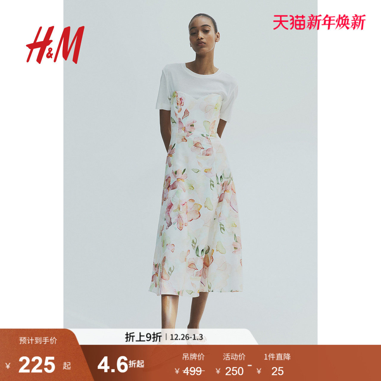 HM女装连衣裙冬季气质无袖亚麻混纺抹胸桃心领中长裙1221741