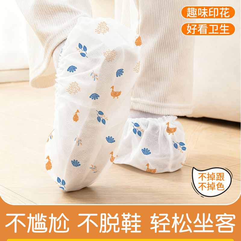 一次性鞋套无纺布室内家用加厚印花可洗耐磨成人脚套鞋罩待客防滑