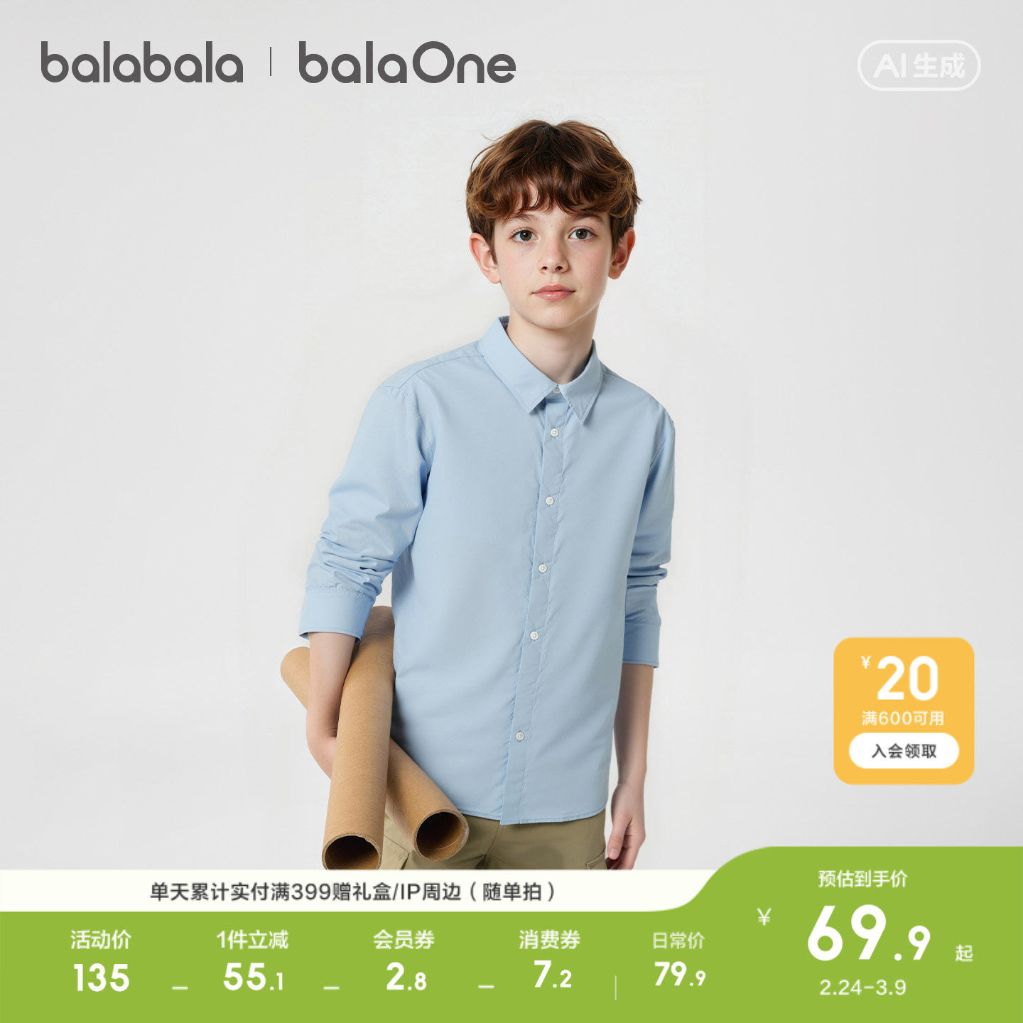 巴拉巴拉童装男童长袖衬衫宝宝2026新款春装纯棉亲肤纯色衬衣时尚