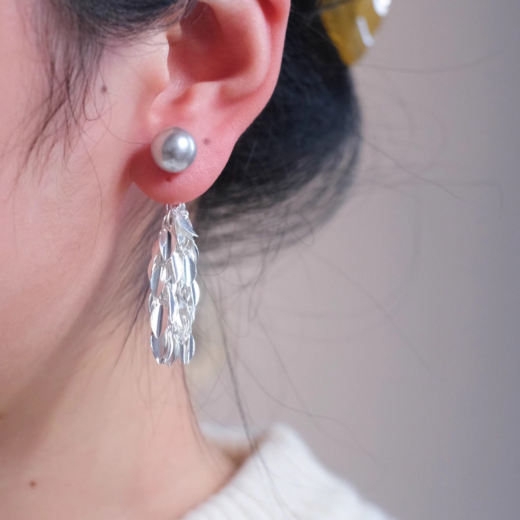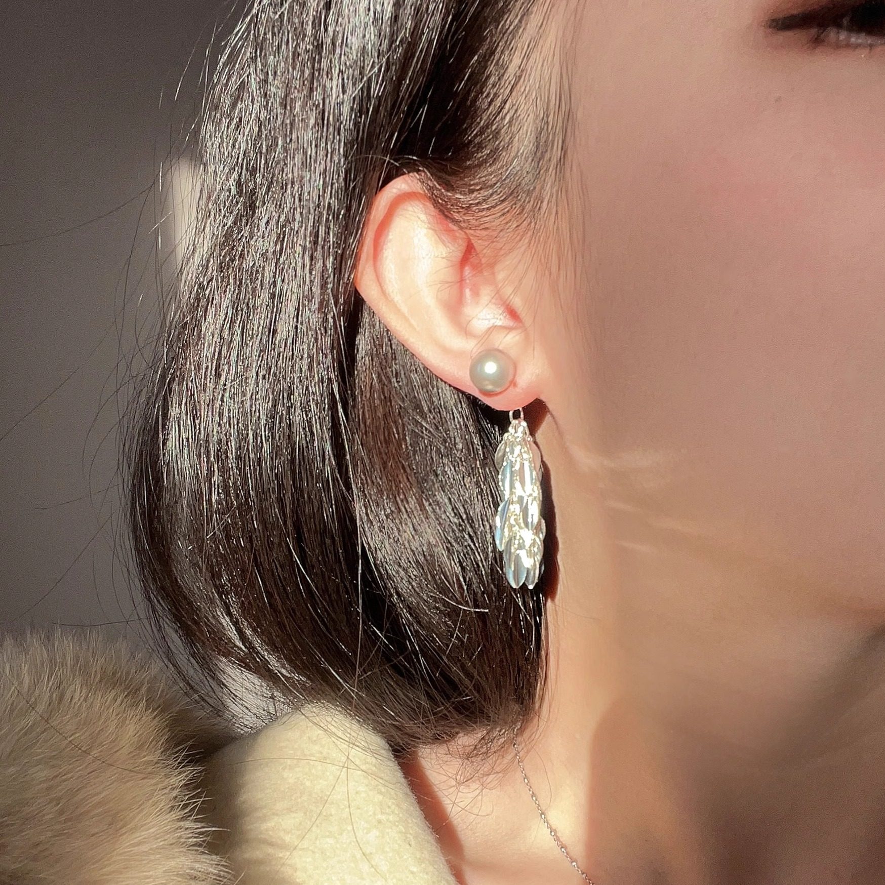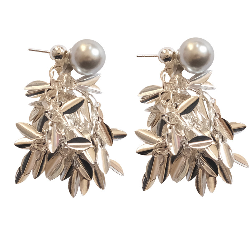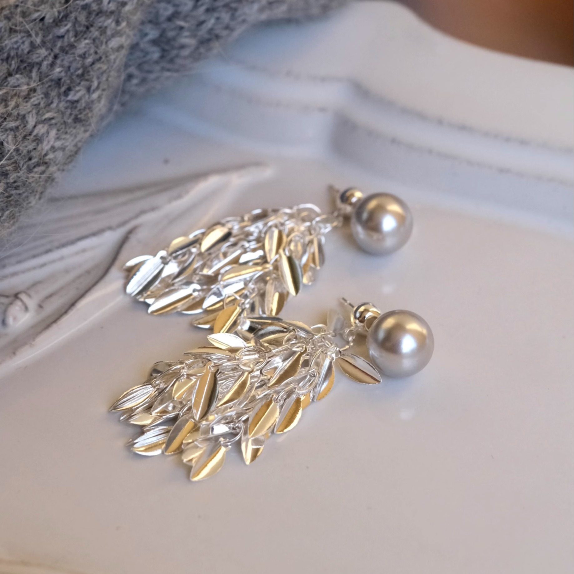 《呼啸山庄》法式小众冷淡风银灰色珍珠流苏叶子高级感耳钉耳环女