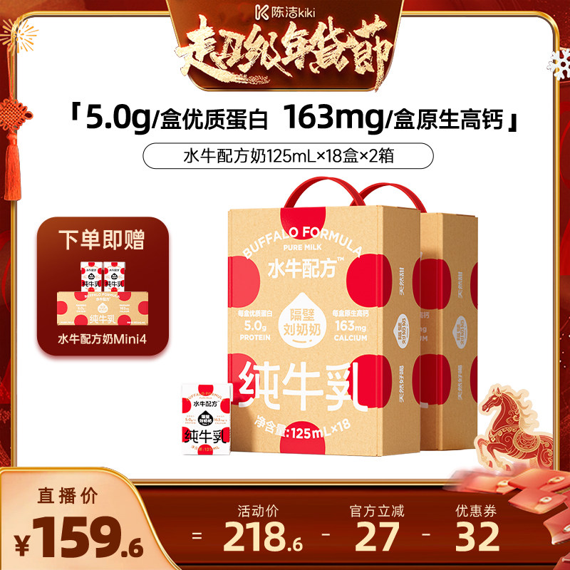 【K姐推荐】隔壁刘奶奶水牛配方纯牛奶125mL*18盒*2箱儿童营养