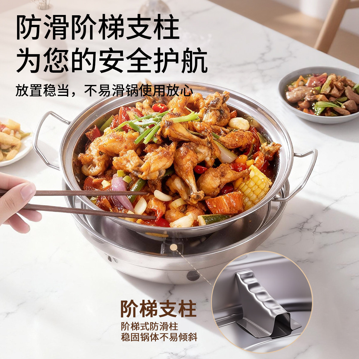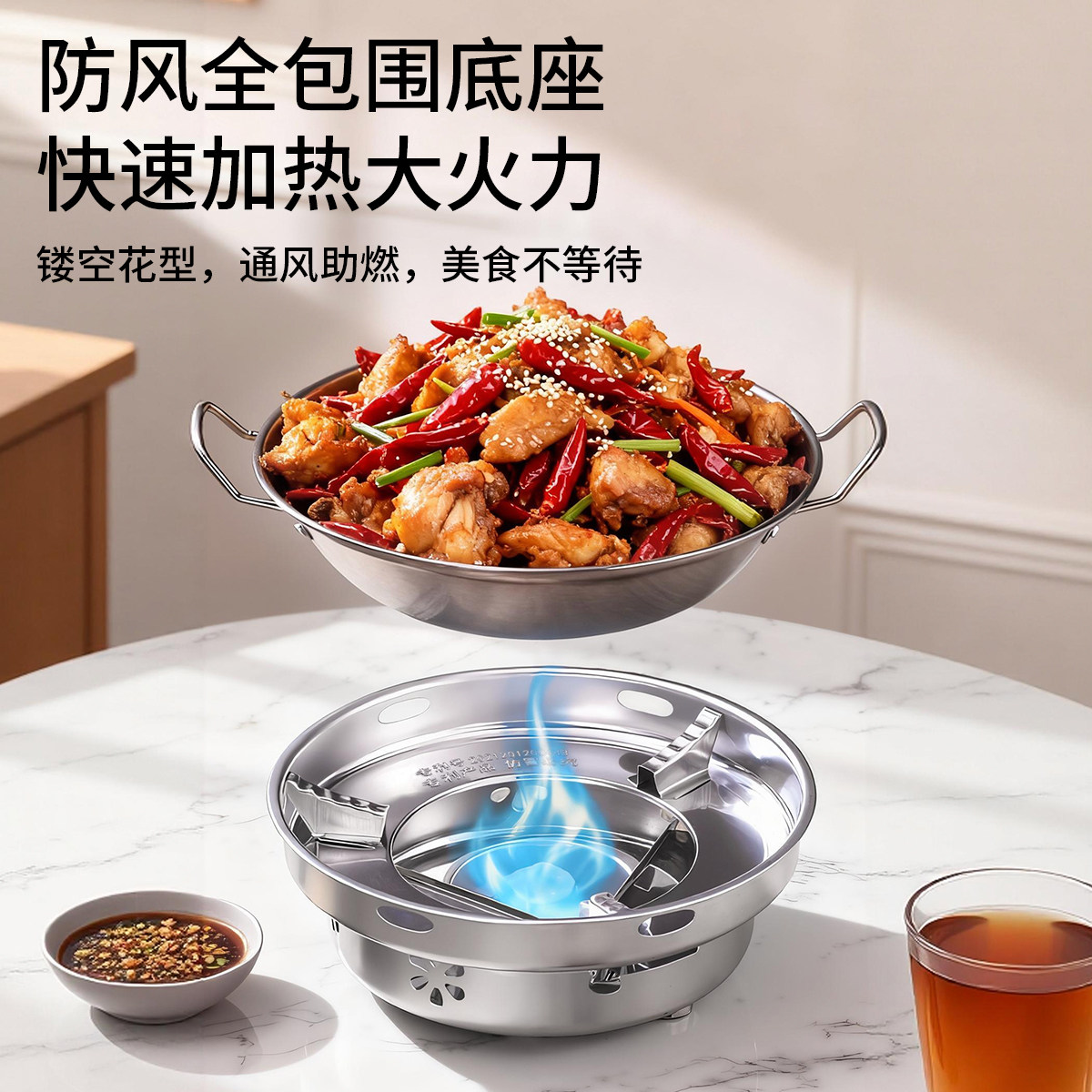 干锅锅具不锈钢防风酒精炉户外家用小火锅商用酒精块饭店便携炉子