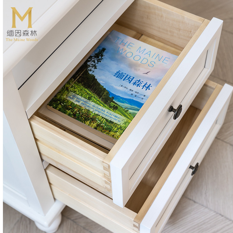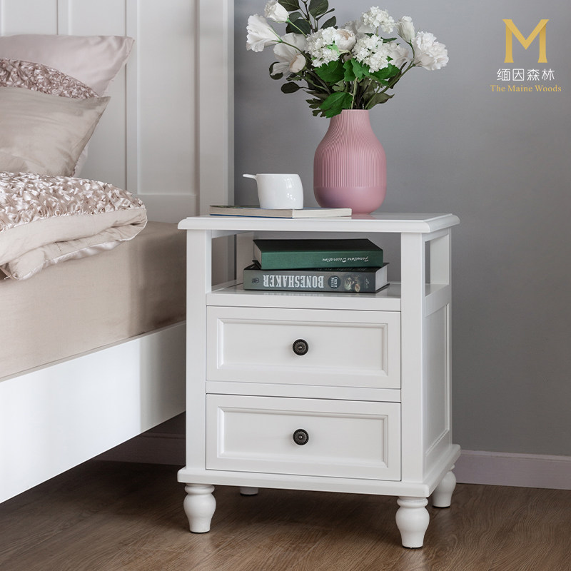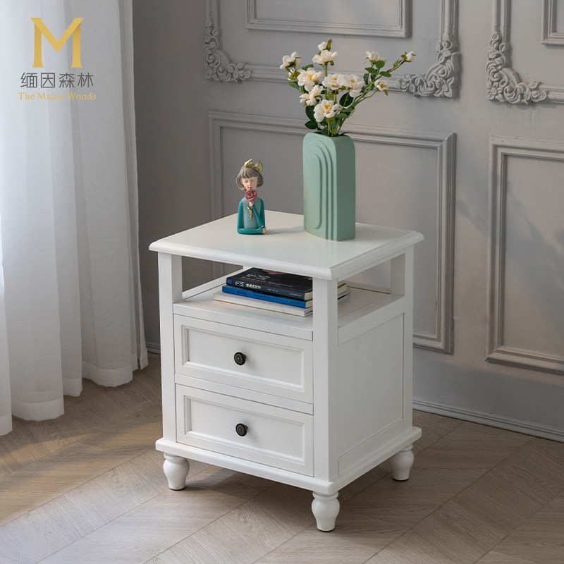 床头柜实木床头美式水性漆木柜子免安装小储物柜简美白蜡木缅因