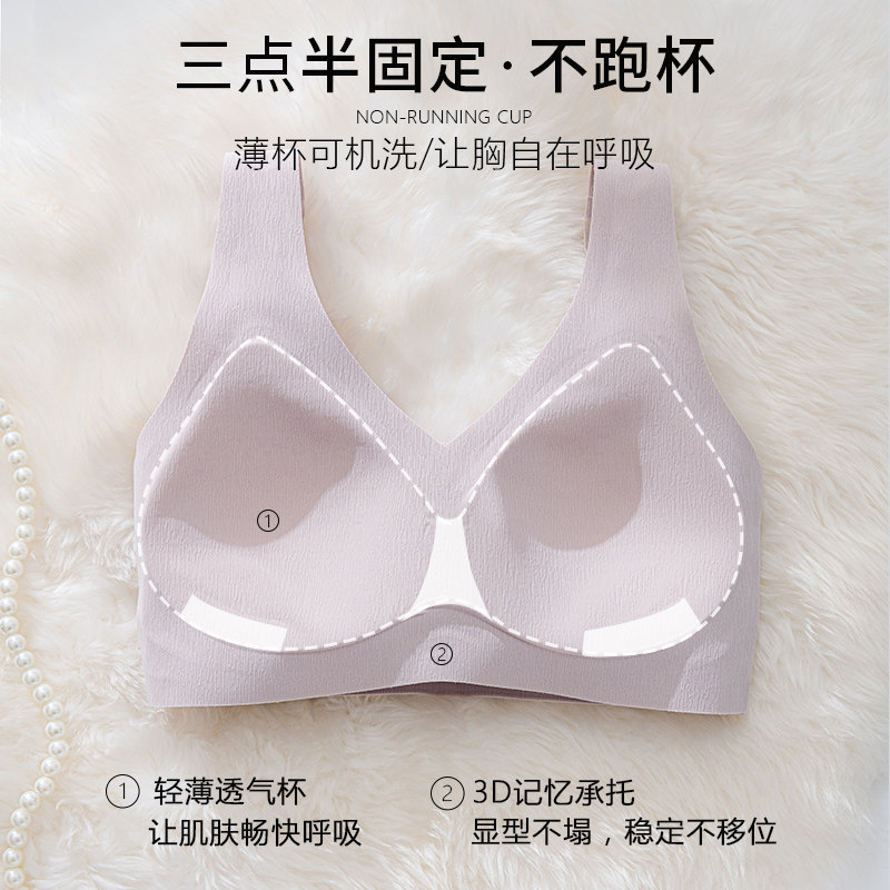 草本初色内衣女细肩带无痕夏季薄款大胸显小胸聚拢凉感无钢圈文胸