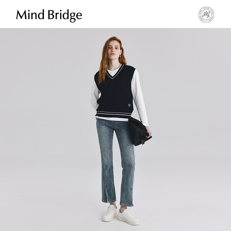 Mind Bridge【绵羊毛】女士学院风毛衣马甲2026春纯色V领针织背心