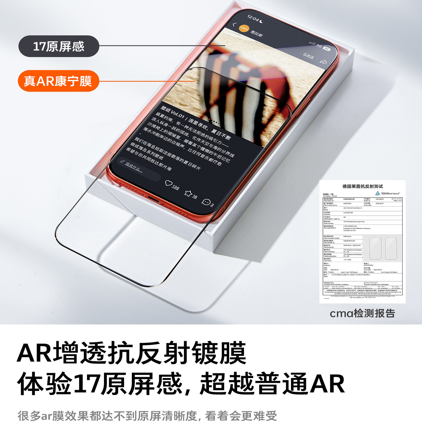 倍思无纹膜适用苹果iPhone17钢化膜AR抗反射16ProMax保护膜15Pro无尘仓14手机贴膜13全屏覆盖12抗摔11防爆Air